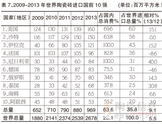 正如人们所见到的,2013年全球陶瓷砖的生产和消费分别增长6.4%与5.9%,陶瓷砖全球进出口增长5.5%,略低于2012年的7%的增长。