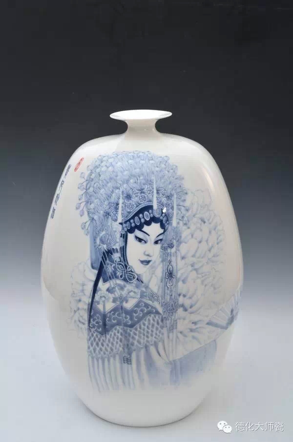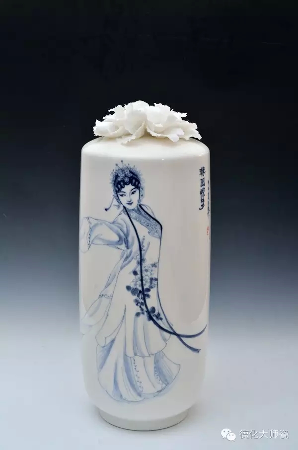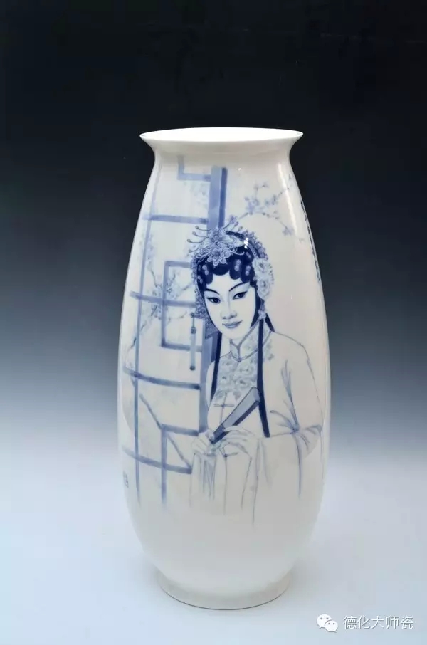 邱玫瑰(以下简称邱):您好!本次展览很多作品展现的大多是以中国传统戏曲为创作题材,将传统的文化赋予新的艺术形式,凝结中国戏曲、陶瓷、绘画三大文化元素于一体。突出德化白瓷陶瓷的材质美感与青花的国画艺术特征、戏剧的唯美浪漫风格。整体画面比较简约生动,清新明快,笔触细腻,朴实无华,是独具高雅审美品位的艺术瓷。