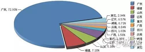 图1 2015年1~6月全国陶瓷砖累计出口额地区占比情况