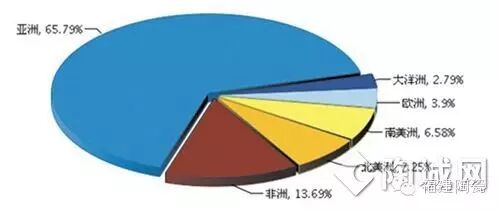 图5 2015年1~6月全国陶瓷砖累计出口额各大洲占比情况