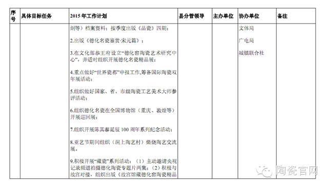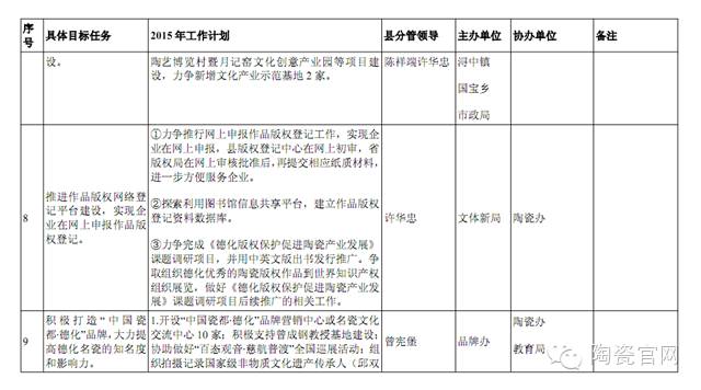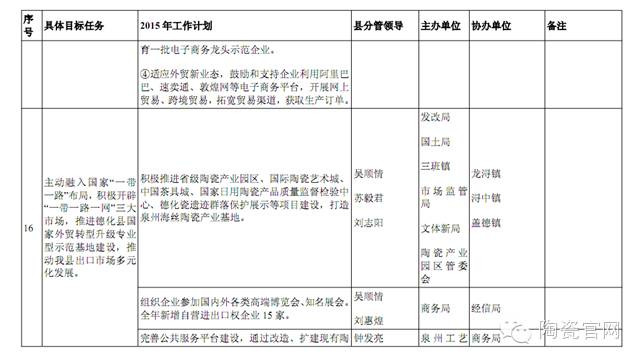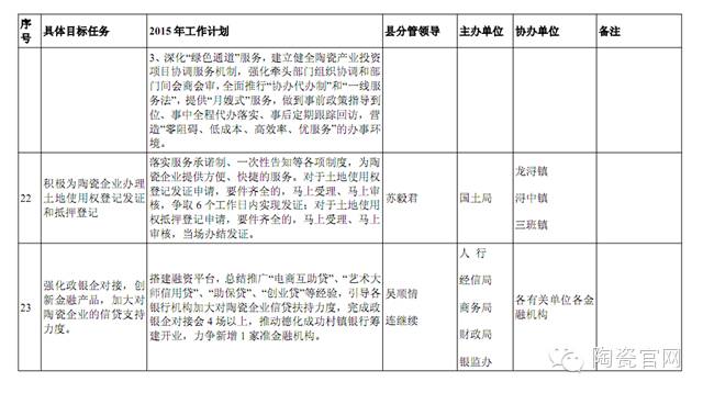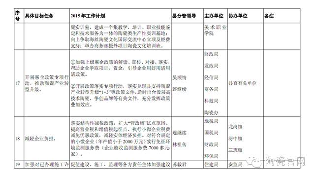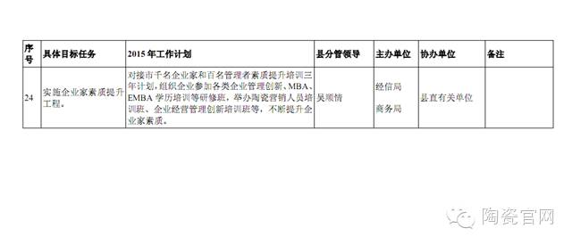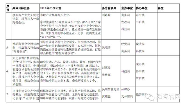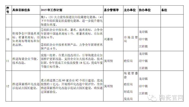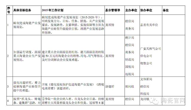 2015年度县陶瓷产业发展工作计划分解表