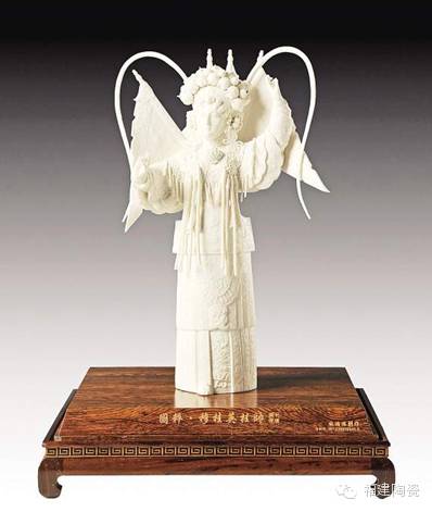 京剧是中华民族的艺术瑰宝,其以独特的艺术魅力被称为“国粹”,是“人类非物质文化遗产代表”。京剧用歌舞演绎的故事是各艺术行类的综合体现。本次荣获“精品奖”的《穆桂英挂帅》作品是以德化白瓷为原料,用德化传统的雕塑工艺,通过高度的写实手法制作而成。展现了穆桂英“我不挂帅谁挂帅!我不领兵谁领兵!”一代女中豪杰的壮志色彩,又凸显出中国瓷都———德化陶瓷传统雕塑精髓的文化内涵,是地方特色文化与传统陶瓷雕塑工艺最完美结合的佳作之一。