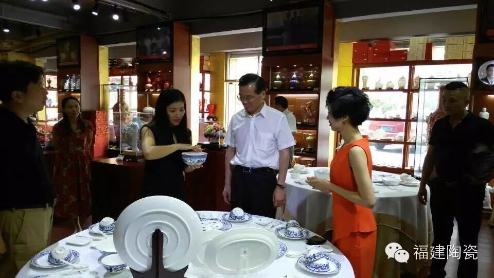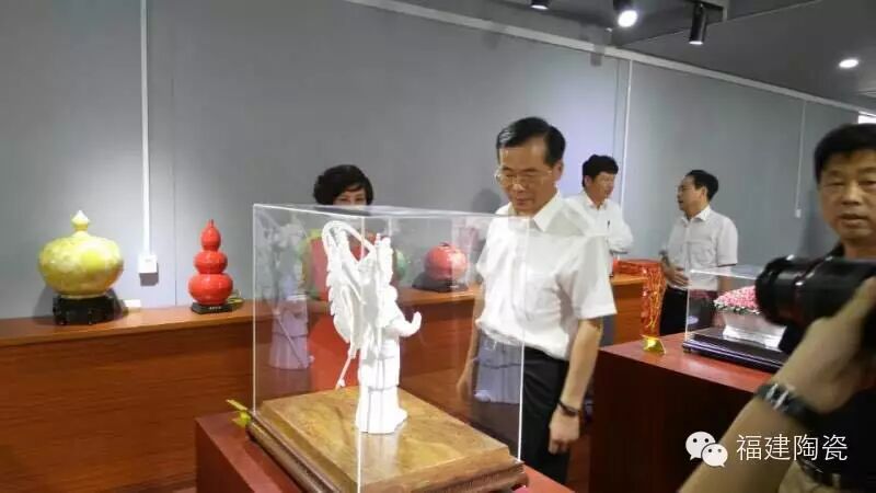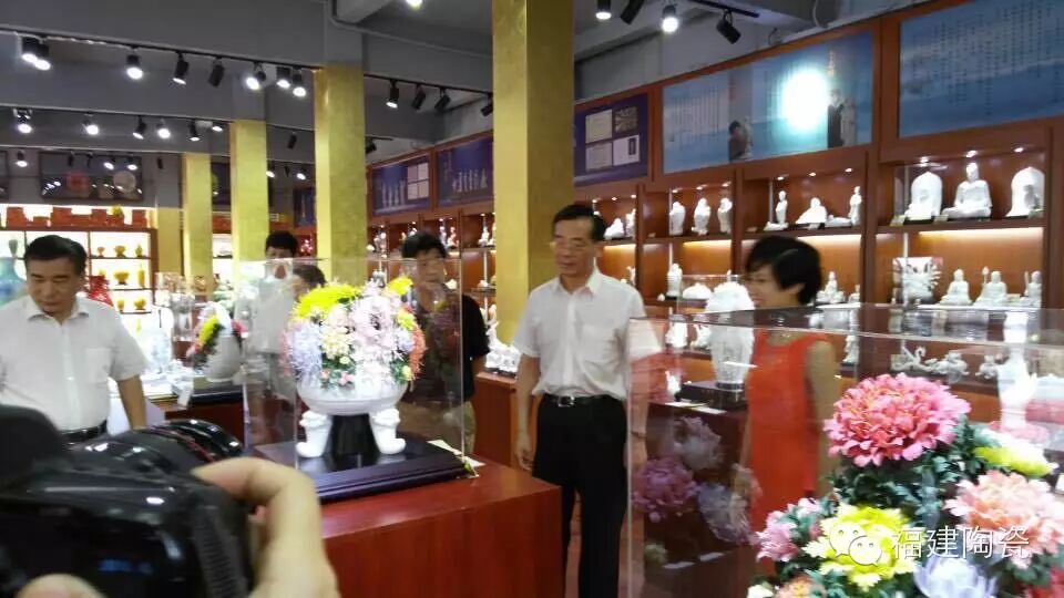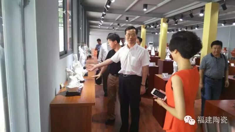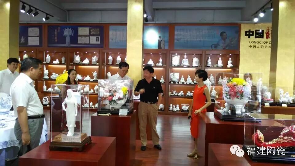 中国龙瓷(厦门)艺术陶瓷文化创意交流中心总经理赖清娥向韩军市长等一行介绍了企业在未来的发展中将紧扣时代潮流“一带一路”海丝战略,借助海丝文化推动世界瓷都·德化瓷艺“走出去”,让更多的人了解德化陶瓷,感受德化瓷艺的魅力。