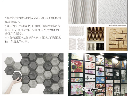 再一次,我们带着责任感向你们分享我们对展会上看到的做出的总结,正如我们在2015国际瓷砖趋势发布会上承诺的一样,如果你没有参加此次发布会或者你在现场错过了一些地方,我们会把这篇总结发布出来和大家分享。我希望能为大家带来一些帮助!